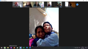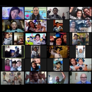 Cierre de ciclo escolar en videollamada, niñ@s y maestr@s comparten risas y juegos.
