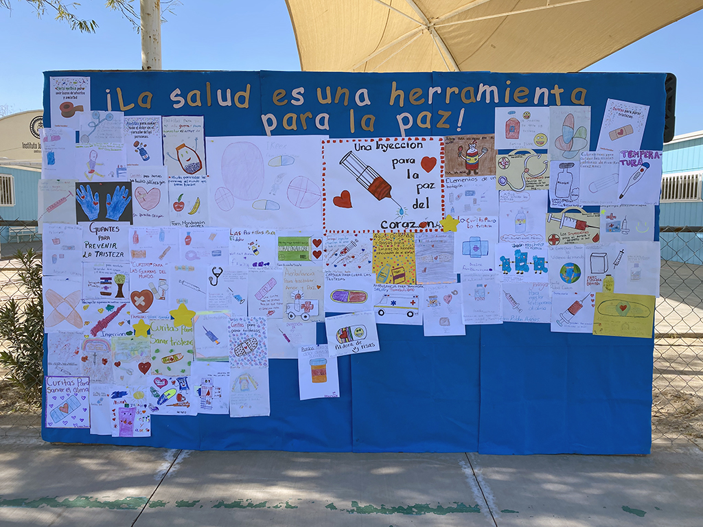 Las familias tomaron un artículo común que se incluía en un botiquín de primeros auxilios transformándolo de manera creativa para transmitir un mensaje de paz y armonía que les ayude a cuidar los tres aspectos de la salud.