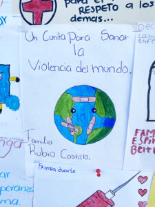 Por medio de este kit llevamos el mensaje a los niños y sus familias de vivir en paz, mostrar el amor a nuestros seres queridos y cuidarnos.